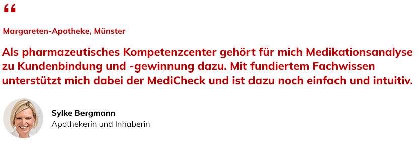 Für Chancendenker*innen und Apotheker*innen mit Profil ist das Medikationsmanagement die honorierte Service-Dienstleistung der Zukunft. Mit dem MediCheck gelingt Ihnen das ab sofort schnell, kompetent und zeiteffizient. Überzeugen Sie sich selbst!