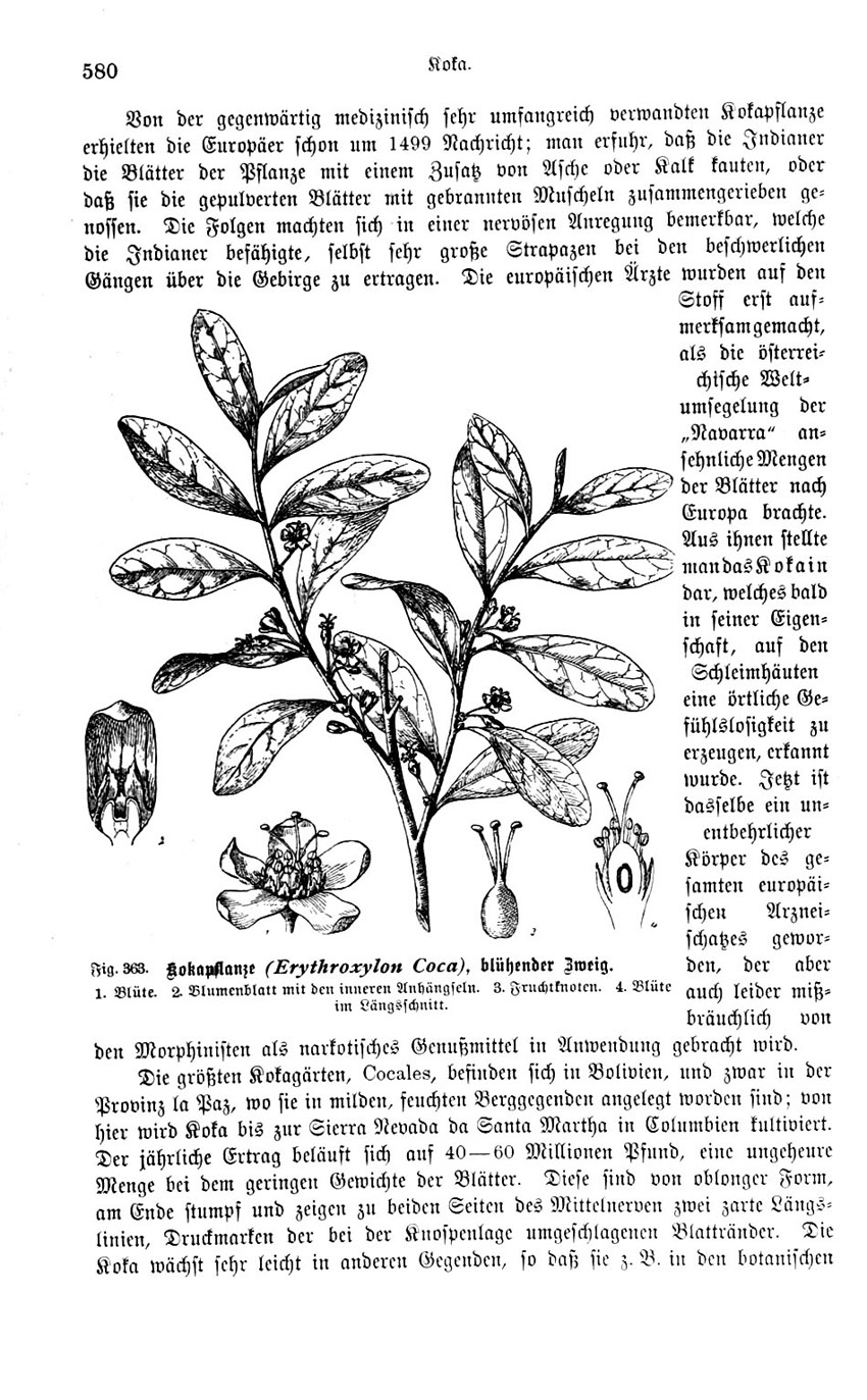 Allgemein: Das aus den Blättern gewonnene Cocain-HCl (Blätter des bis 1 m hohen Strauches; Wildform hat warzige, die Kulturform glatte Stängel; die Pflanze bringt kleine weiße fünfzählige Blüten und rote Steinfrüchte hervor
