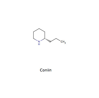 • Coniumalkaloide mit Coniin, γ-Conicein, Conhydrin, Pseudoconhydrin (mit Piperidin als Grundgerüst; werden als Pseudo-Alkaloide angesehen, da die Biosynthese im eigentlichen Sinne nicht von Aminosäuren ausgeht)