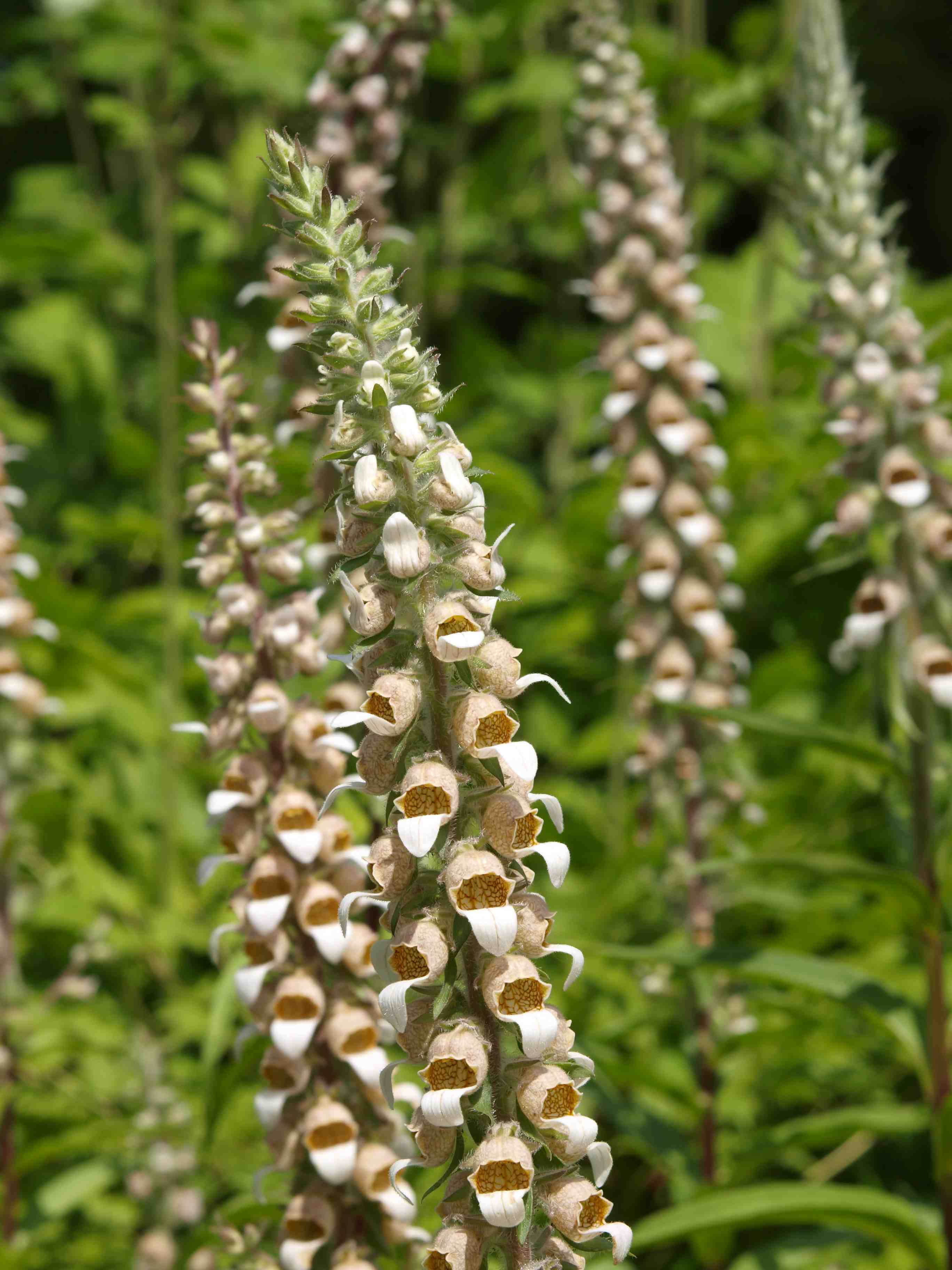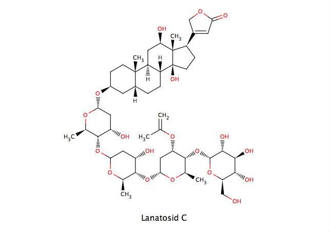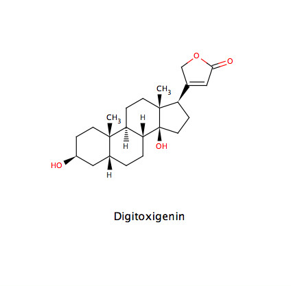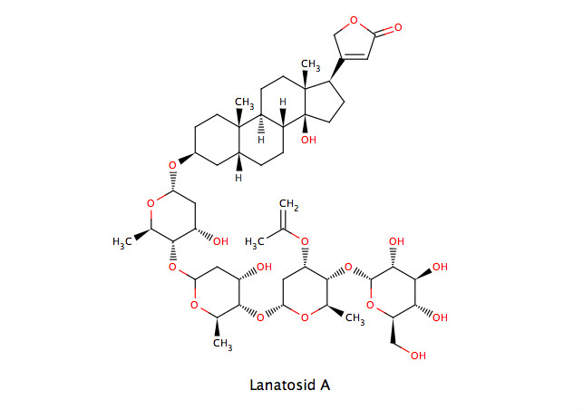 - Aglyka wie bei Digitalis purpurea: Digitoxigenin, Gitoxigenin, Gitaloxigenin, aber im Unterschied dazu sind hier auch Digoxigenine (zusätzliche OH-Gruppe) vorhanden