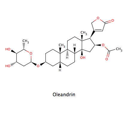 • Mindestens 1,5% Cardenolide: Oleandrin, Oleaside, sowie Odorosid A und Adynerin (Herzwirkung haben nur Oleandrin und Odorosid A)