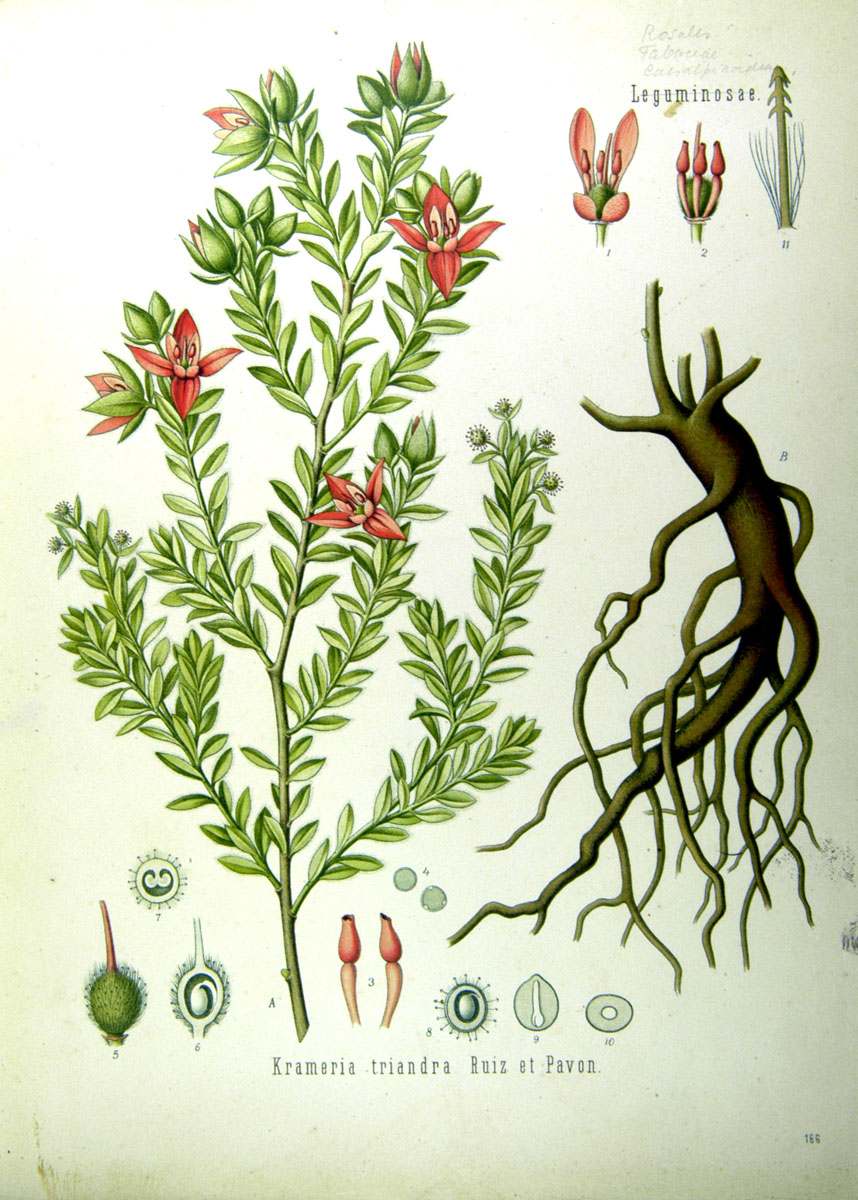 Pflanze: Krameria lappacea (syn.: K. triandra) / Rote Ratanhia