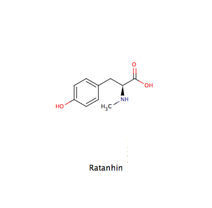 • Gerbstoffe: Proanthocyanidine, bei lägerer Lagerung enstehen aus diesen unlösliche Phlobaphene (“Ratanhiarot” – siehe auch Tormentillae rhizoma)
